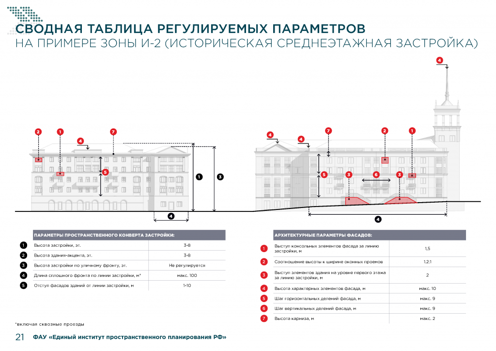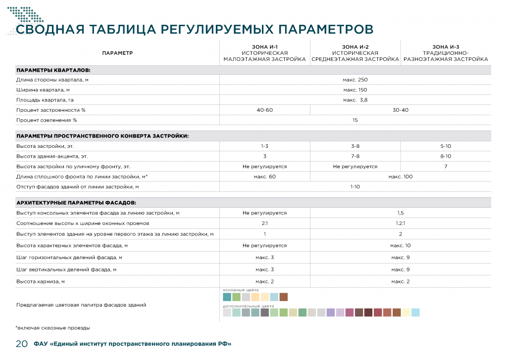 Сводная таблица регулируемых параметров (историческая средне этажная застройка)