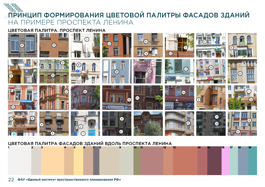 Цветовая палитра фасадов зданий вдоль проспекта ленина